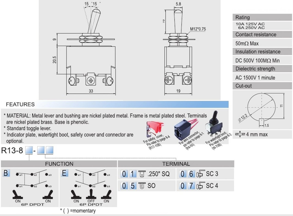 10A 250V AC 1/3HP