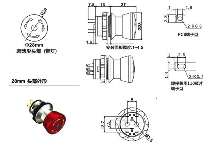 Switch combination: 1NO 1nc/2no 2NC