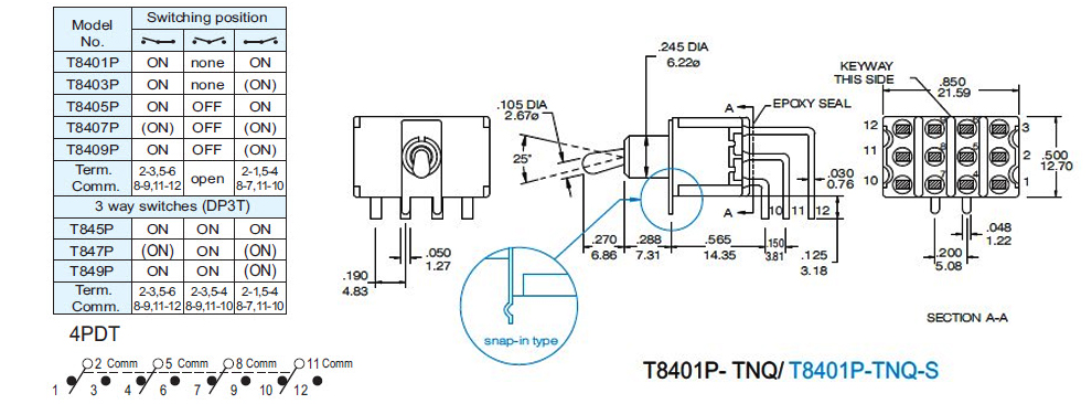 Contact Rating: 5A @125 VAC or 28 VDC (Q contact)