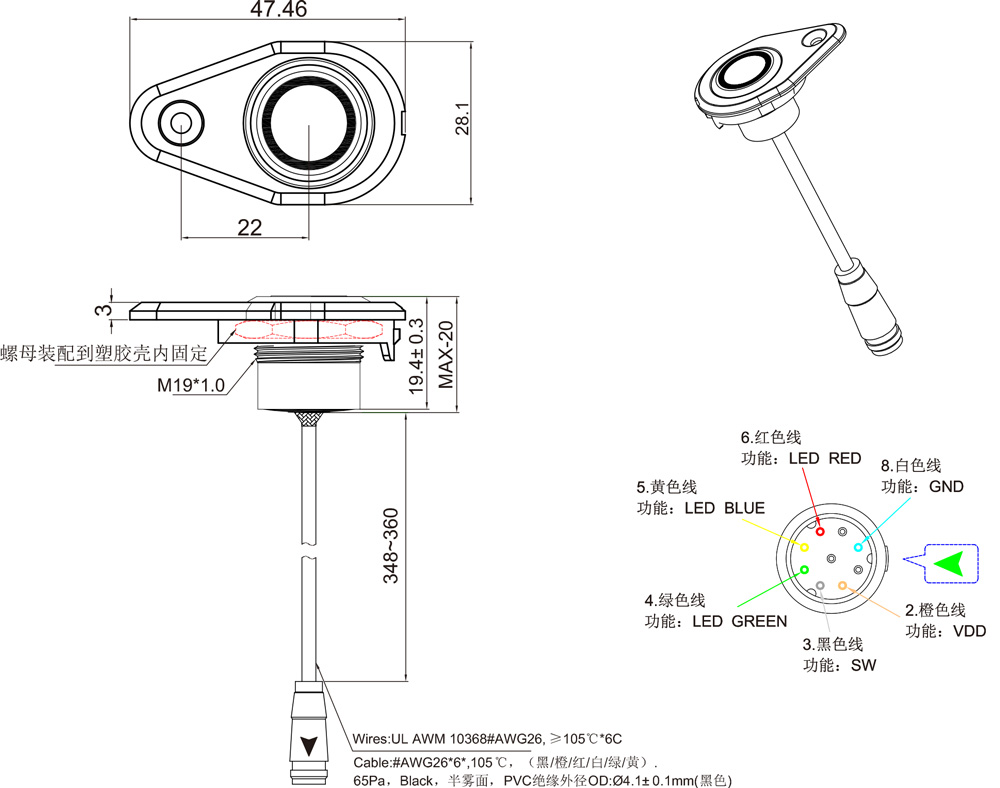 PRODUCT MODEL:PTM19-11M-F-RRGB-A6-H2-3.5