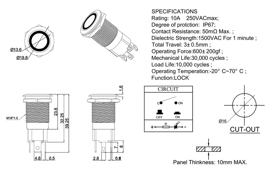 Mechanical Life:30,000 cycles ;