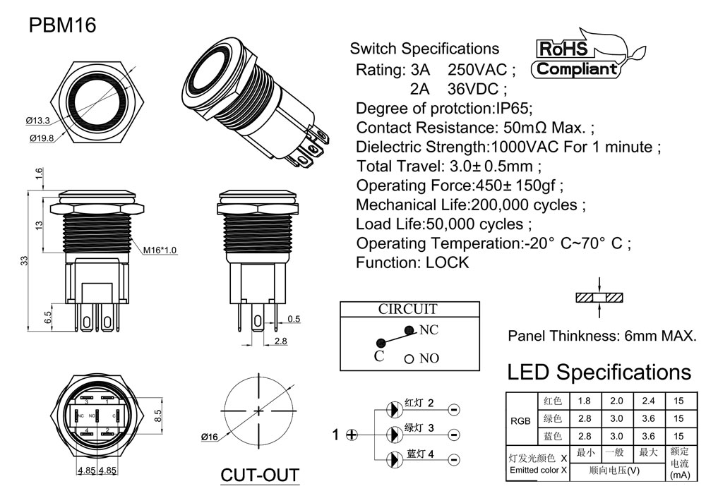 PRODUCT MODEL:PBM16-13M-F-RRGB3-S0-S