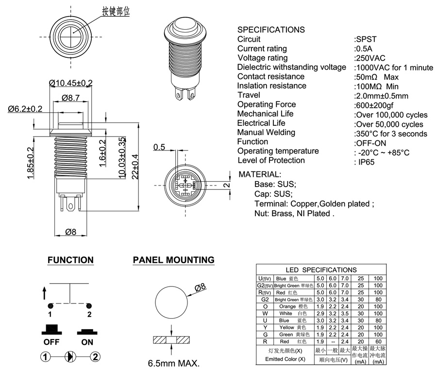 Travel :2.0mm±0.5mm