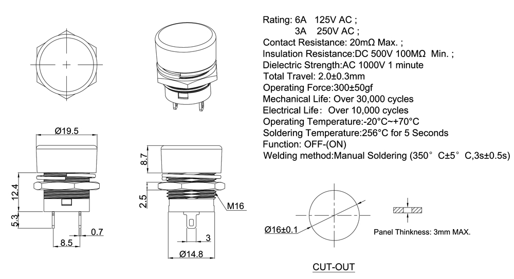 Rating:6A 125V AC/3A 250VAC