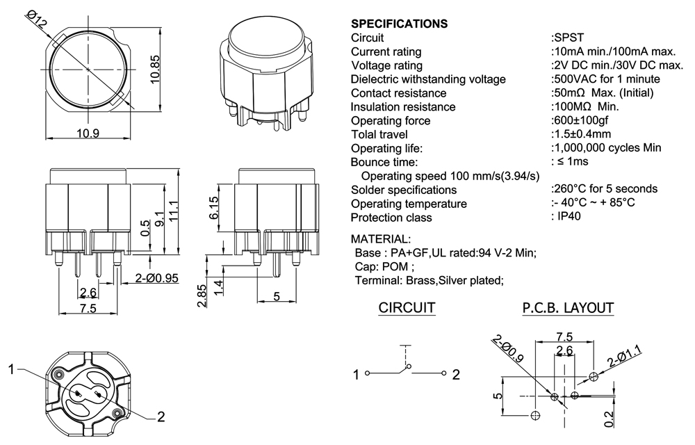 Contact resistance:50mΩ Max. (Initial)