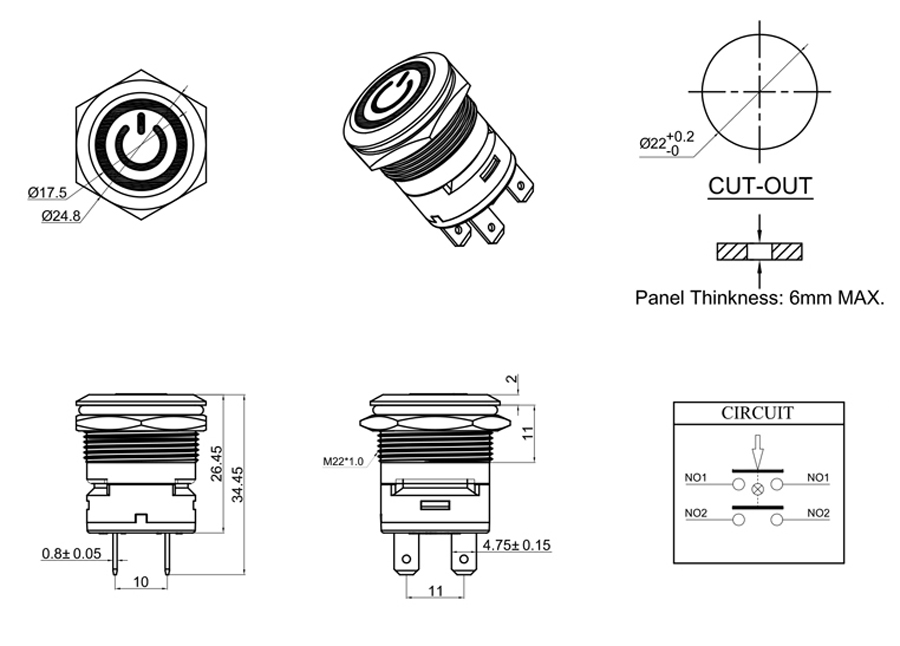 Total Travel: 4±0.5mm ;