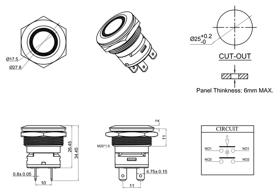 Load Life:20,000 ( Resistive 16A 250VAC ) cycles ;