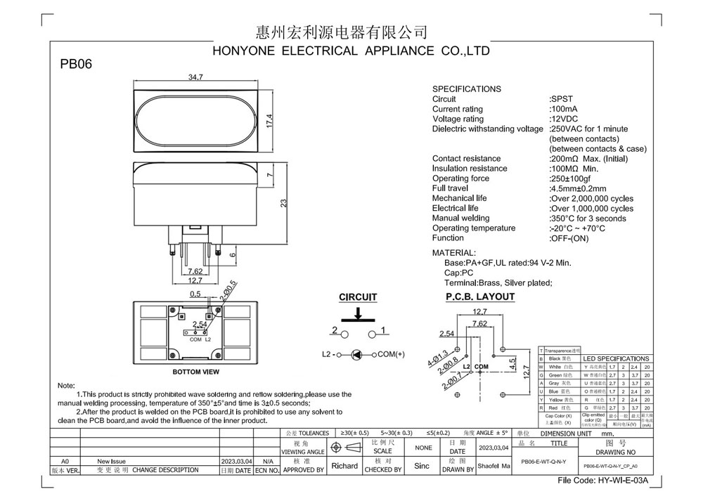 PRODUCT MODEL:PB06-E-WT-R-N-Y