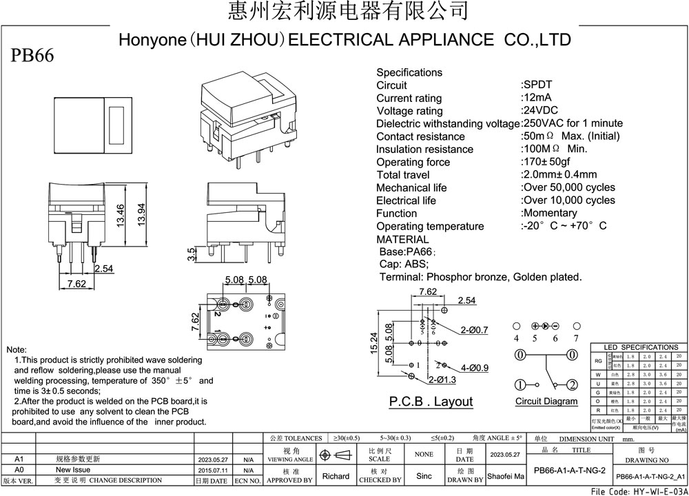 PRODUCT MODEL:PB66-A1-R-T-NR-2