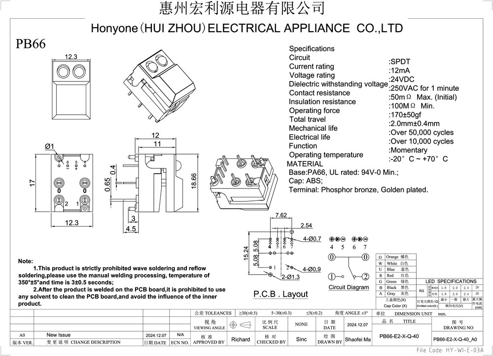 Operating Force :170±50gf