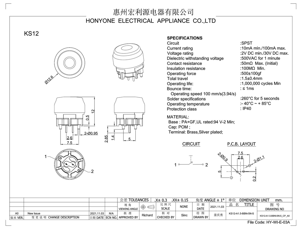 PRODUCT MODEL:KS12-C1.5-BBN-5N-S