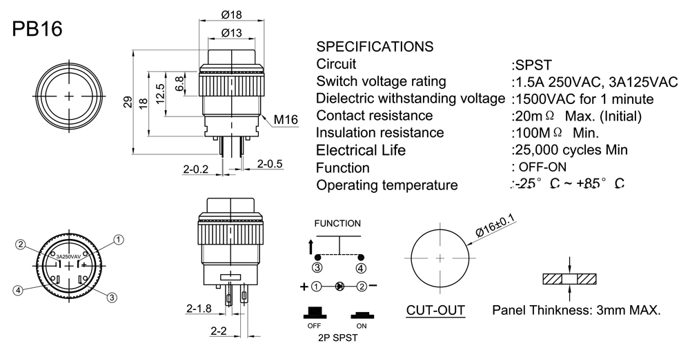 Electrical Life :25,000 cycles Min