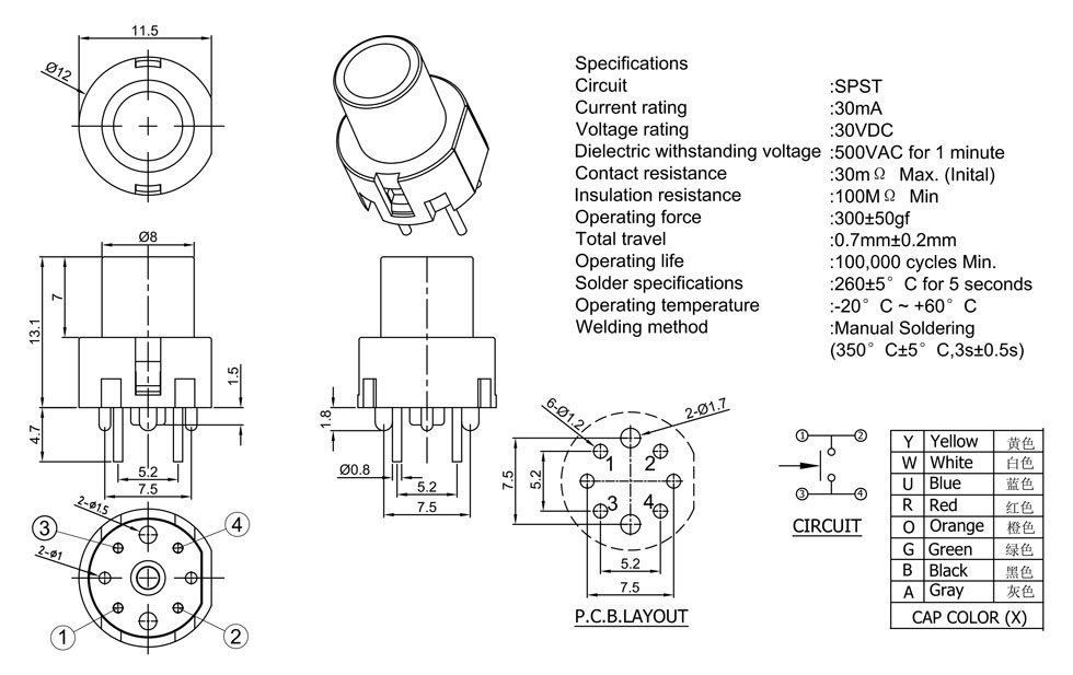 Operating Force:250±50gf