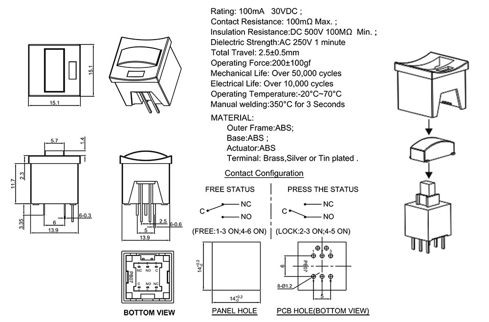 Opearating Force:200,000 Cycles Min