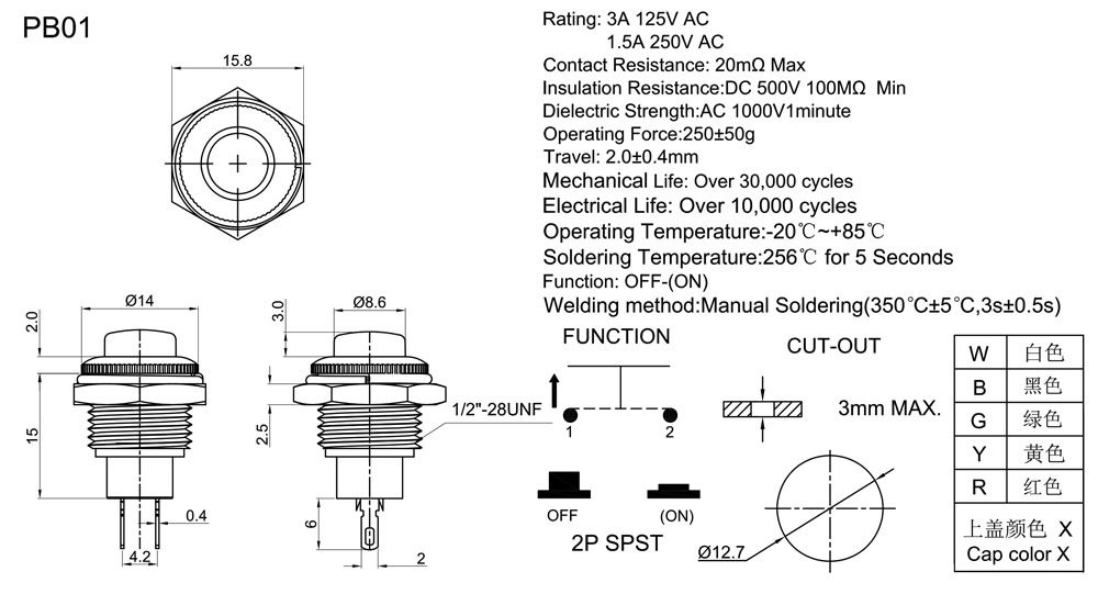 Operating Force:250±50gf or 450±100gf