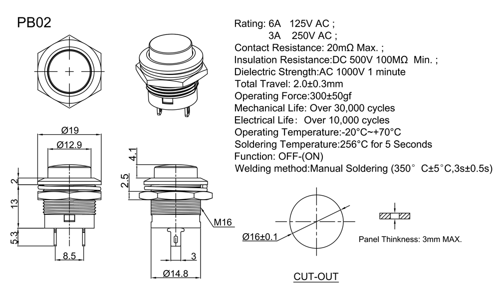 HONYONE PAM 20A High current dual waterproof metal switch pr...