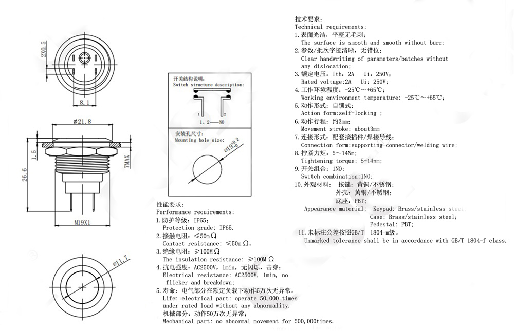 Tightening torque: 5-14nm; Switch combination : 1NO;