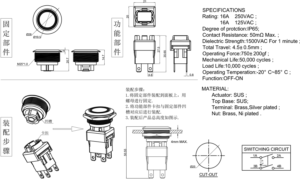 Rating:16A  125VAC;:16A  250VAC;