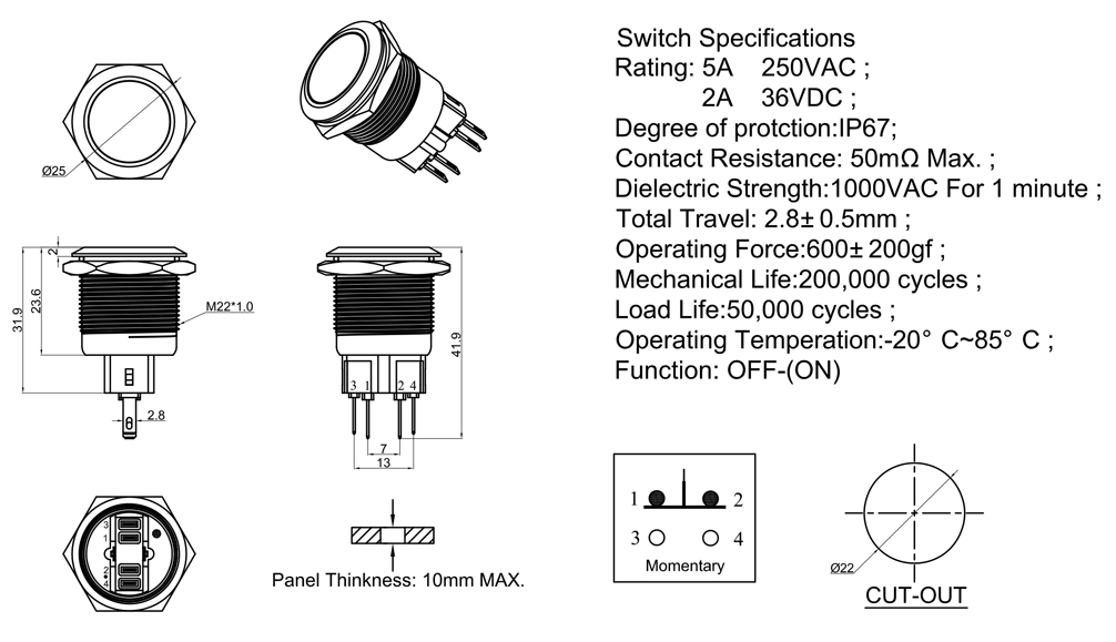 Mechanical Life:200,000 cycles ;