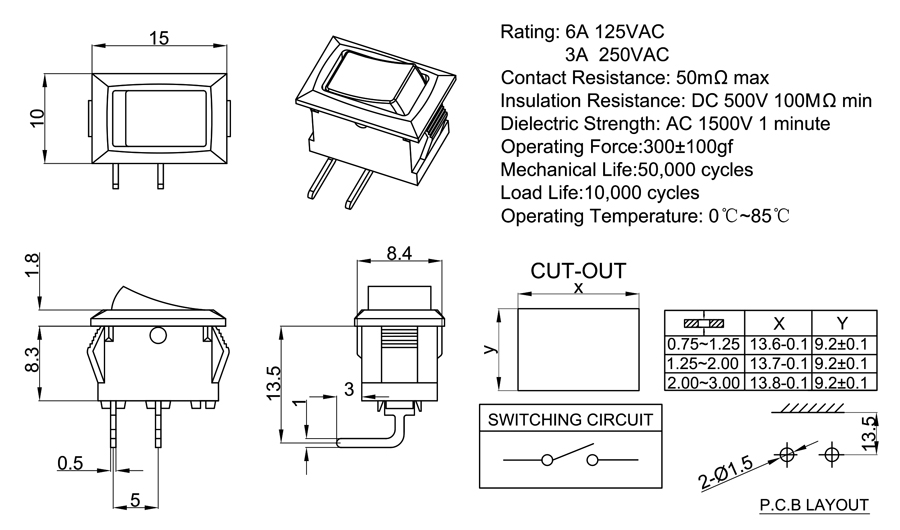 Rating:6A 125VAC 3A 250VAC