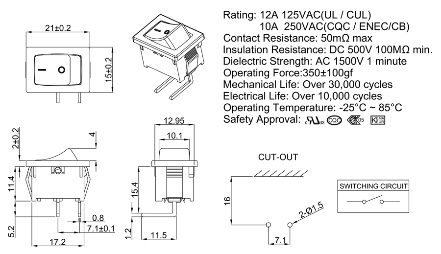 Rating:12A 125VAC ( UL CUL)