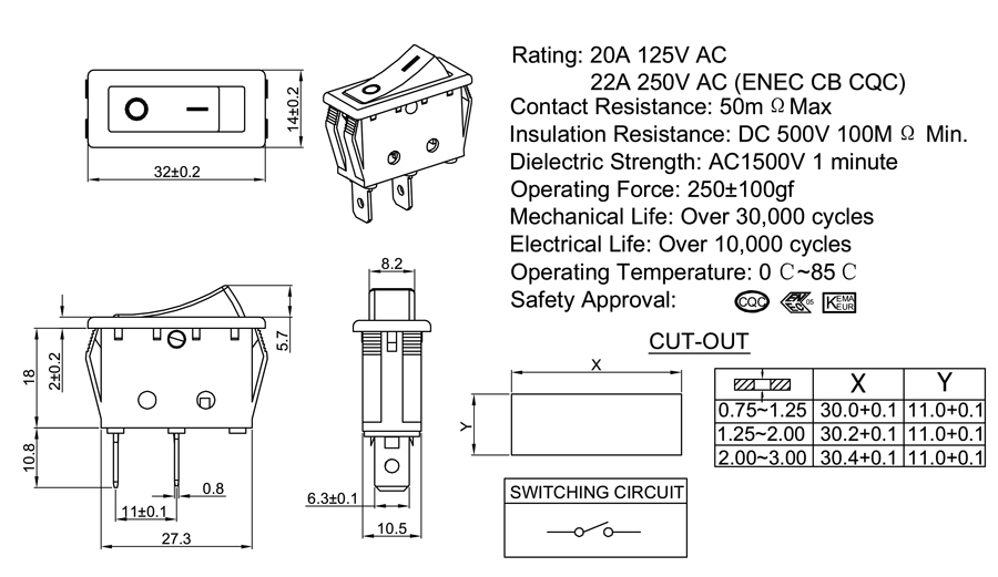 22A 250V AC (ENEC CB CQC)