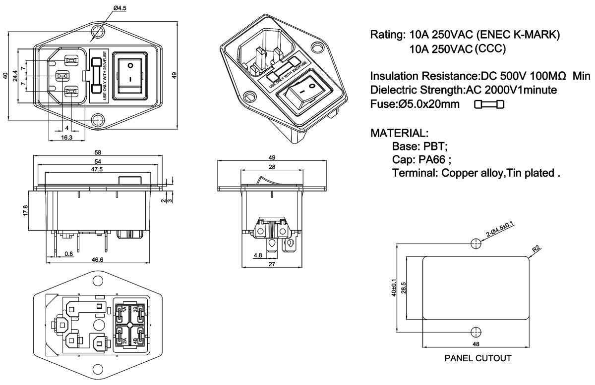 SWITCH+SOCKET+FUSE HOLDER(5*20 fuse)