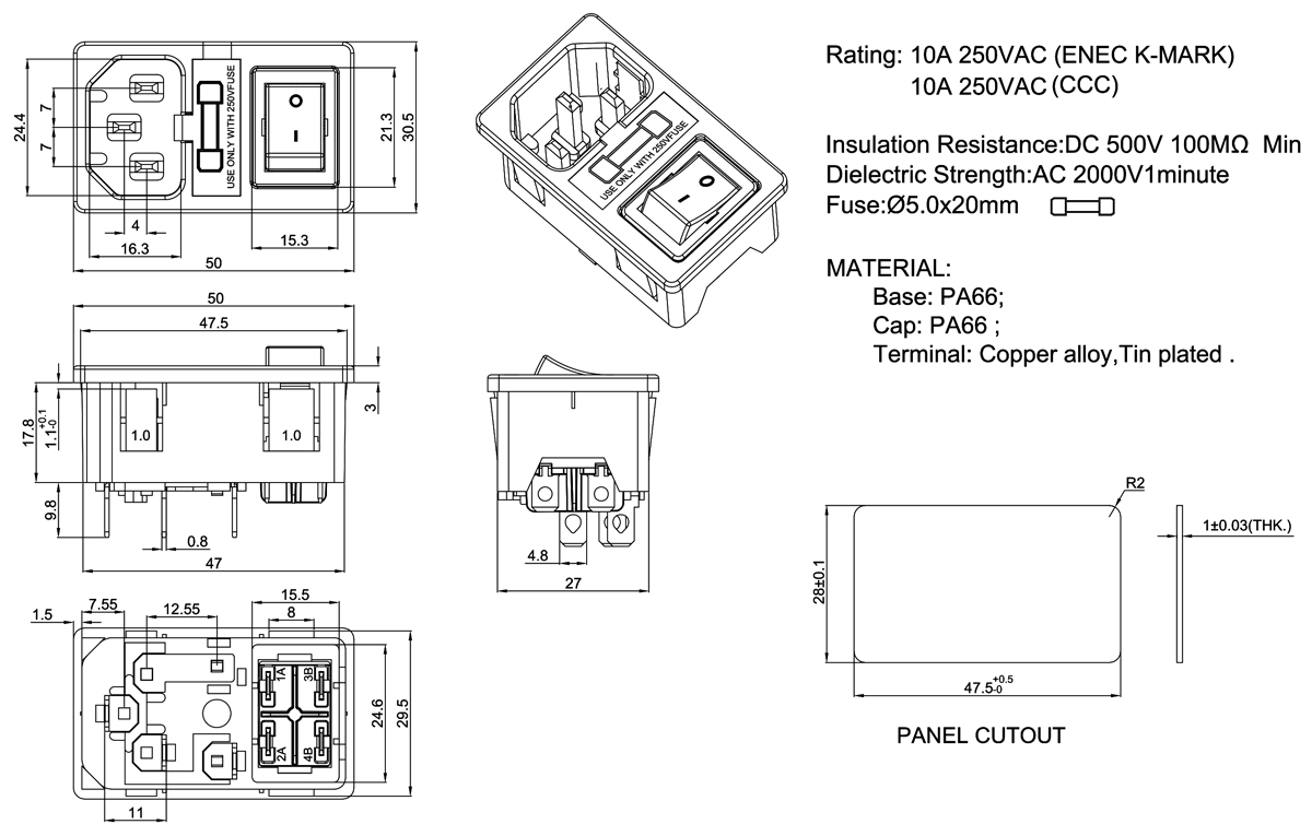 SWITCH+SOCKET+FUSE HOLDER(5*20 fuse)